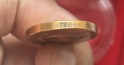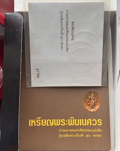 ขนาดประมาณ 3 x 2.5 ซม. เนื้อบรอนซ์ พร้อมกล่องเดิมๆ ไม่มีหนังสือ
