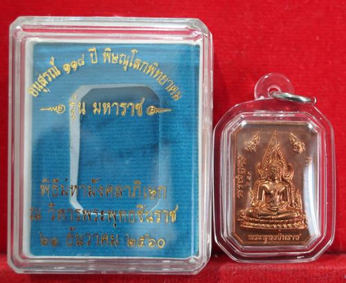 เริ่ม100บาท พระพุทธชินราชหลังสมเด็จพระนเรศวร 118ปีพิษณุโลกพิทยาคม ทองแดงลงยาลายธงชาติ สวยมาก กล่องเดิม พร้อมเลี่ยม |