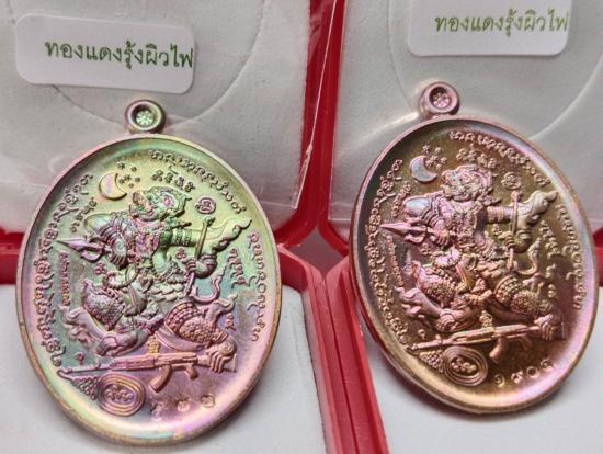 เคาะแรก 2 เหรียญ++ (เนื้อทองแดงรุ้งผิวไฟ)++เหรียญพหูรมาน รุ่นหนุมานเชิญธงรบ ชนะศึกไพรีพินาศ หลวงปู่ศิลา (หลวงปู่มหาศิลา) หลวงปู่เวิ่น พระอาจารย์ต้อม ปลุกเสก 9 วาระ เลข 1905 และ 573 |