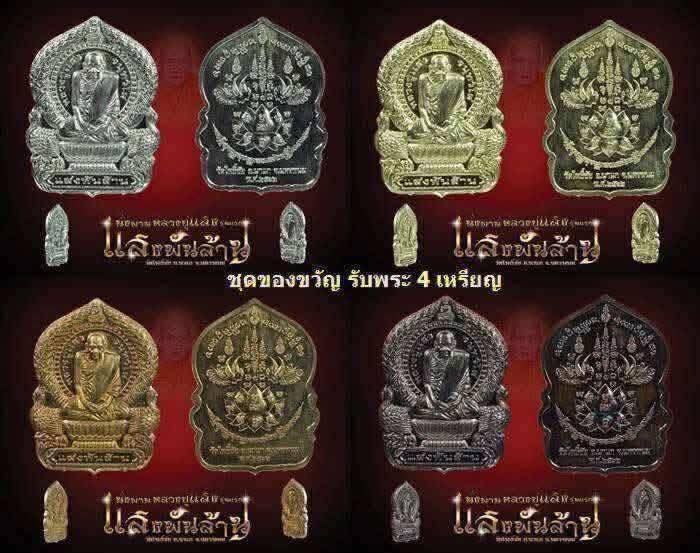 เหรียญนั่งพานรุ่นแรก ลป.แสง วัดโพธิ์ชัย นครพนม รุ่นแสงพันล้าน ชุดของขวัญ 4 เหรียญ(ตามภาพ) ราคาจองชุดละ 500 บาท วันนี้วัดใจเคาะแรกแดงครับ