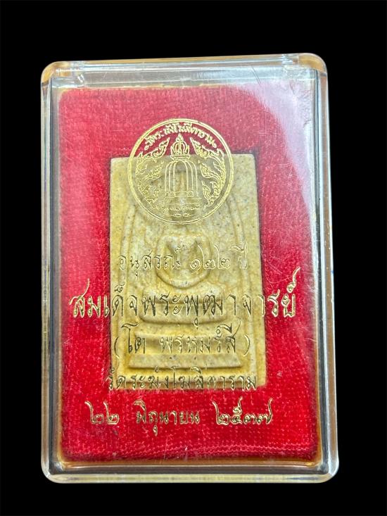 เคาะแรกแดงครับ พระสมเด็จวัดระฆังพิมพ์ใหญ่ทรงนิยม ( รุ่น 122 ปี เนื้อผงแตกลายงา นิยม) หลังตายาง พอมองเห็นครับ พร้อมกล่องเดิม สวยมากเนื้อฉ่ำๆ ขึ้นไขสวยๆครับ |