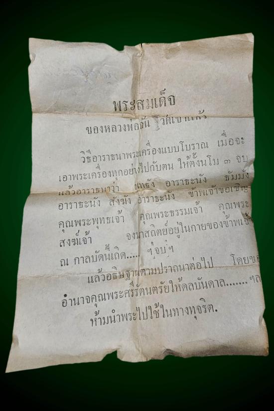 สมเด็จหลังรูปเหมือน หลวงพ่อกัน วัดเขาแก้ว พิมพ์ใหญ่ เนื้อผง จ.นครสวรรค์ (ปิดทองเดิม พร้อมใบฝอย)