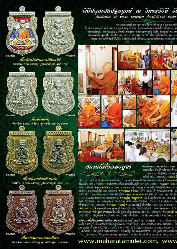 หลวงปู่ทวดพิมพ์หน้าเลื่อน หลังเลื่อน รุ่นรัตนโกสินทร์จัดสร้างปี 2557 พิธีพุทธาภิเษกยิ่งใหญ่ 2 วาระ