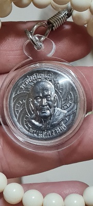 เหรียญอายุวัฒนมงคล 80 ปี เนื้อตะกั่ว(มีค่าดั่งทองคำ)หลวงตาม้า วัดถ้ำเมืองนะ พร้อมรอยจารหลวงตาม้า เลี่ยมจากวัดพร้อมประคำ