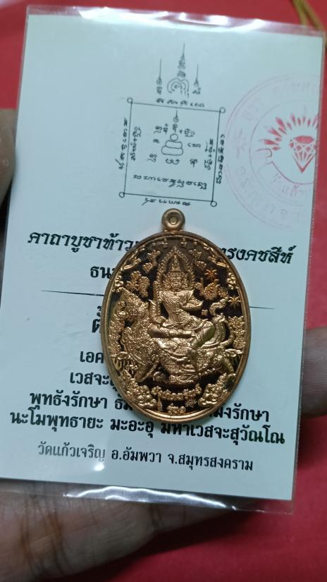 เหรียญท้าวเวสสุวรรณทรงคชสีห์ เนื้อทองแดง หลวงพ่อนวณ วัดแก้วเจริญ ตอกโค๊ทแจกทาน พร้อมซองคาถาท้าวเวส |