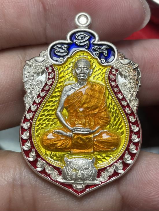 เหรียญเสือคาบดาบ หลวงพ่อบุญมา เนื้อเงินลงยา เลข 72 สวยเดิมๆพร้อมกล่องคับ