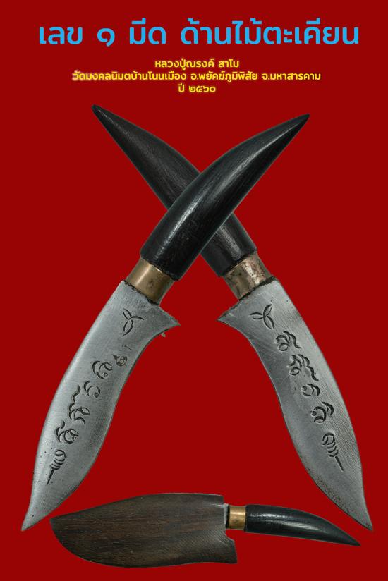 เลข ๑ มีด ไม้ตะเคียน หลวงปู่ณรงค์ สาโม วัดมงคลนิมตบ้านโนนเมือง อ.พยัคฆ์ภูมิพิสัย จ.มหาสารคาม ปี ๒๕๖๐ |