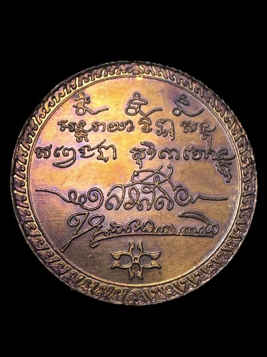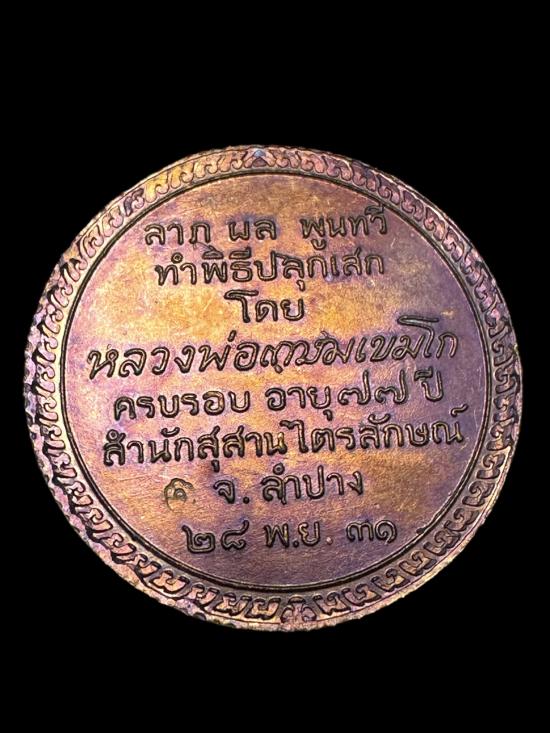 เหรียญกลมสวัสดี ลาภผล พูนทวี เนื้อทองแดง หลวงพ่อเกษม เขมโก ปลุกเสกปี พ.ศ.2531 ขอบสตางค์ สวยๆ