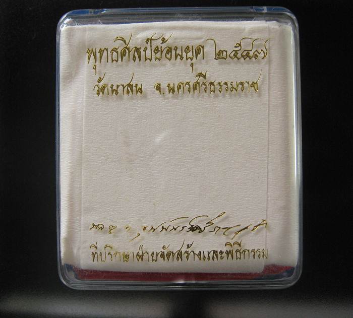 พุทธศิลป์ย้อนยุค วัดนาสน จ.นครศรีฯ ปี 2547 เนื้อไม้โรยผงไม้ตะเคียน กล่องเดิม |