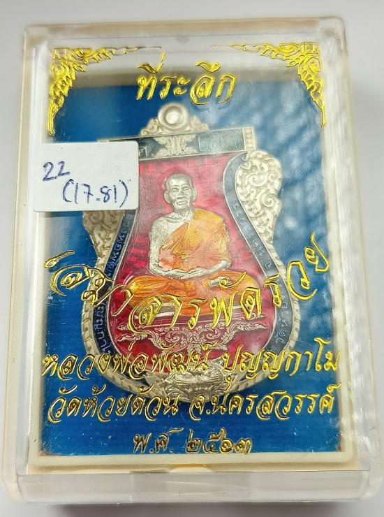 เหรียญเสมา "สารพัดรวย" หลวงพ่อพัฒน์ วัดห้วยด้วน เนื้อเงินลงยาขุ้ยพื้นสีแดง (น้ำหนัก 17.81กรัม) เบอร์ 22 พร้อมกล่องครับ |