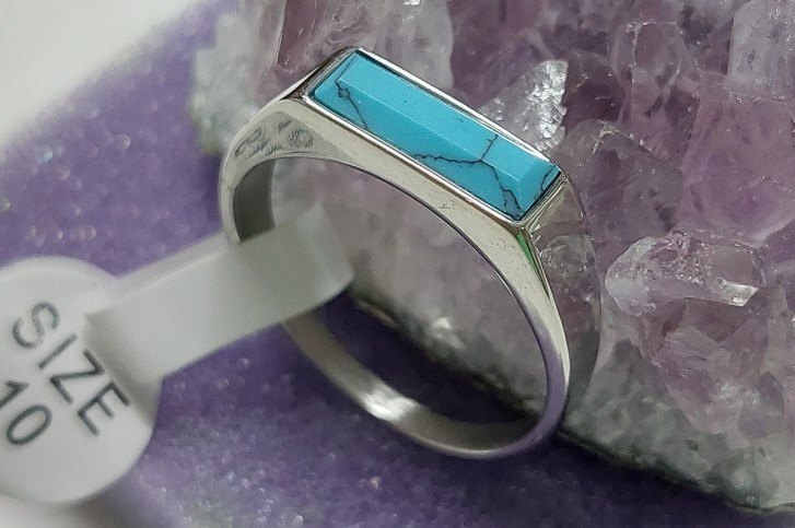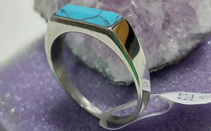 แหวนหัวเทอร์ควอยซ์หรือหินการเวก ตัวเรือนแหวนเป็นสแตนเลสขัดเงาไม่ลอกไม่ดำ ขนาดแหวนเบอร์10 |