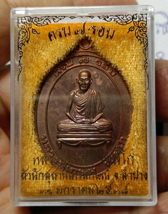 เหรียญหลวงพ่อเกษม เขมโก รุ่น 7 รอบ ปี 38 เนื้อทองแดง พร้อมกล่องเดิมๆ เบาๆครับ