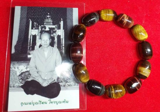 ***วัดใจ***สร้อยข้อหินไทเกอร์อาย 3 ทหารเสือ เม็ดใหญ่ พร้อมการ์ดคาถา คุณแม่บุญเรือน โตงบุญเติม วัดอาวุธฯ |
