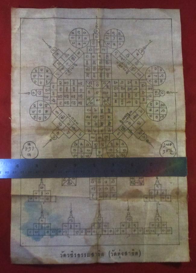 ผ้ายันต์ วชิรธรรมสาธิต (วัดทุ่งสาธิต) เนื้อผ้าดูเก่า ครับ