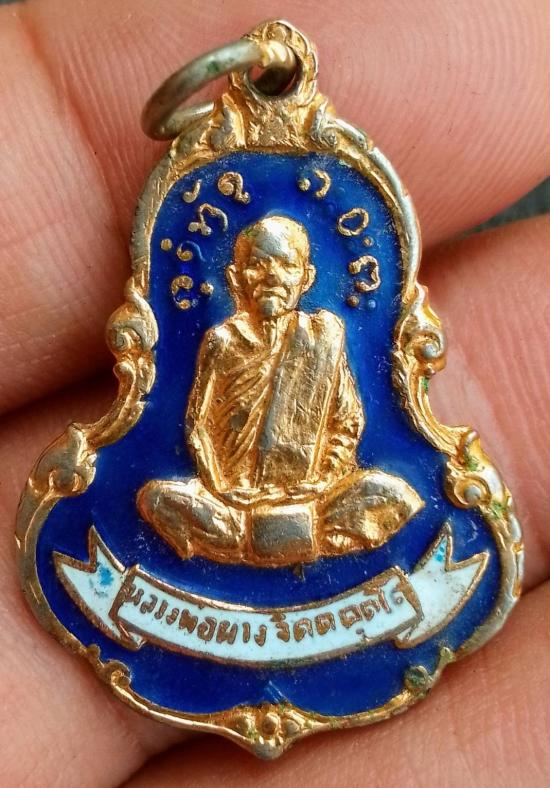 เหรียญหลวงพ่อผาง รุ่นสร้างเจดีย์ ปี 2520 ลงยาสีน้ำเงิน |