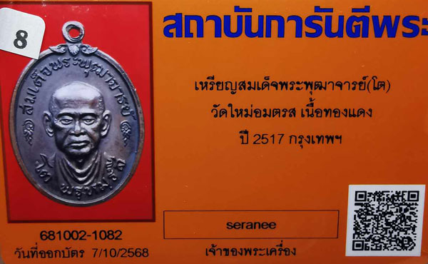 เหรียญสมเด็จพระพุฒาจารย์(โต) วัดใหม่อมตรส เนื้อทองแดง ปี2517 จ.กรุงเทพ + บัตรG-pra สภาพเดิมค่ะ สภาพตามรูปทุกประการค่ะ