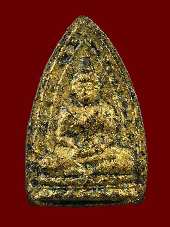 พระพุทโธข้างเม็ด หลวงปู่เฮี้ยง วัดป่า ชลบุรี ปี2498 เนื้อผงค ลุกรักปิดทองเดิม หลังจารมือ |