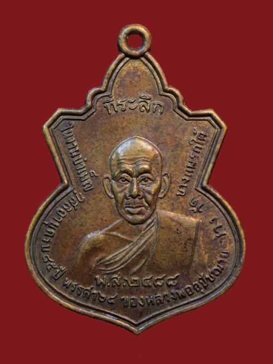 เหรียญรุ่นแรก ปี พ.ศ.2488 ที่ระลึกทำบุญอายุครบ 85 ปี ลักษณะคล้ายเหรียญรูปอาร์ม ด้านหน้าบรรจุรายละเอียดของเหรียญไว้ครบถ้วน ว่าสร้างขึ้นเนื่องในโอกาศอะไร ด้านหลังเป็นยันต์และอักขระขอม ประกอบไปด้วย เนื้อทองเหลือง ทองแดง และเนื้อเงิน ซึ่งเนื้อเงินบางเหรียญจะเป็นเหรียญแหนบ มักจะเรียกว่าเหรียญแจกกรรมการ
