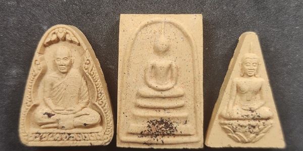 พระชุดมหามงคล สามปฐพี ข้าวสารหินพันปีผสมแร่เหล็กน้ำพี้ ชุด 3 องค์ เจ้าคุณฟู รุ่น1 วัดเวฬุราชิน กรุงเทพฯ ปี40 สวยคากล่องเดิม |