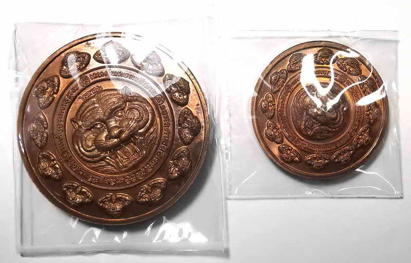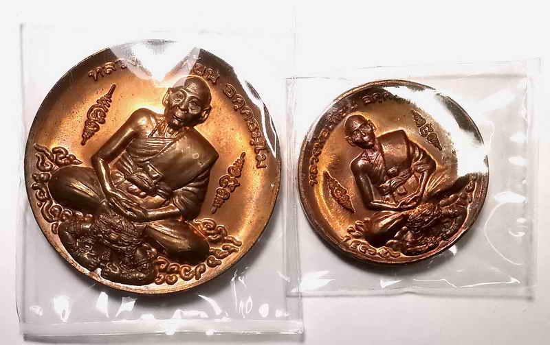 ( เคาะเดียว 2 เหรียญ พร้อมกล่องเดิม ) เหรียญหลวงพ่อเพี้ยน มงคลบารมี ทวีโชค เนื้อทองแดง พิมพ์ใหญ่ 4.5 ซ.ม. + พิมพ์เล็ก 3.2 ซ.ม.