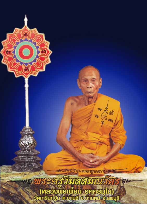 เนื่องในวโรกาสที่ทรงเจริญพระชนมพรรษาครบ 80 พรรษา ในวันที่ 5 ธันวาคม 2550 พระครูวิมลสมณวัตร หรือหลวงพ่อเพี้ยน อัคคธัมโม พร้อมด้วยพุทธบริษัทและศิษยานุศิษย์ พร้อมใจกันจัดสร้างพระพุทธรูปยืนปางถวายเนตร สูง 29 ศอก เพื่อถวายเป็นพระราชกุศลในบวรพุทธศาสนา และเป็นปูชนียวัตถุ พุทธบูชา พุทธานุสรณ์ แก่พุทธศาสนิกชนทั่วไป สำหรับพระพุทธรูปยืนปางถวายเนตร สูง 29 ศอก ที่จัดสร้างขึ้นครั้งนี้จะประดิษฐาน ณ อุทยานอัคคธัมมานุสรณ์ วัดเกริ่นกฐิน ต.บ้านชี อ.บ้านหมี่ จ.ลพบุรี แต่ยังขาดจตุปัจจัยในการก่อสร้างอยู่เป็นจำนวนมาก ดังนั้นจึงได้จัดสร้างวัตถุมงคล รุ่นมงคลบารมี ทวีโชค เพื่อนำรายได้สมทบทุนในการดำเนินการก่อสร้างให้สำเร็จตามวัตถุประสงค์ต่อไป