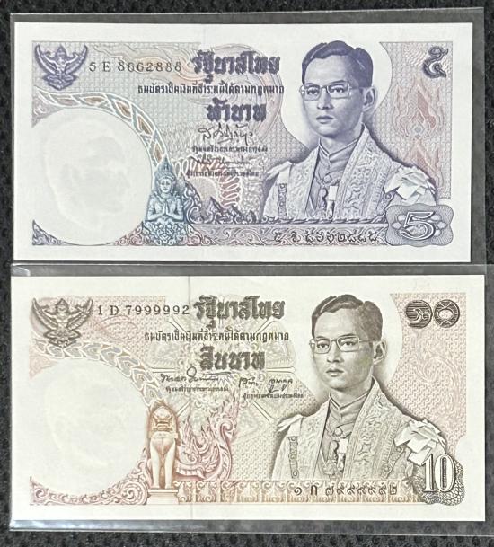 ธนบัตร 5 บาท และ 10 บาท ร.9 เลขสวยๆ ทั้ง2 ใบ