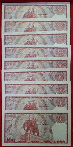 ธนบัตร 100 บาท ในหลวงรัชกาลที่ 9 แบบ 12 ด้านหลังช้างแดง เลข 6 หลัก หายาก เลขเรียง จำนวน 9 ฉบับ สภาพ UNC ใหม่,ไม่ได้ใช้,ไม่มีรอยพับ ลายเซ็น สมหมาย ฮุนตระกูล - นุกูล ประจวบเหมาะ |