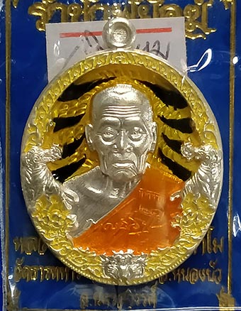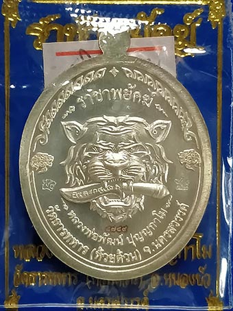 เหรียญหลวงพ่อพัฒน์ วัดห้วยด้วน "รุ่นราชาพยัคฆ์ปี" 2563 เนื้อเงินลายเสือ ลงยาเหลือง-ดำ ลงยาจีวร เลขสวย