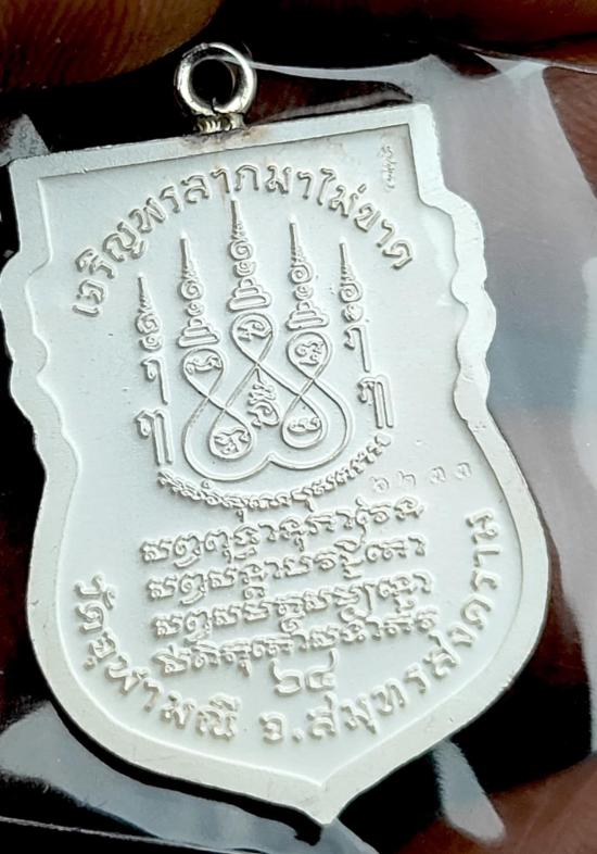 ออกวัด 2,500 เหรียญเสมาหน้าแซยิด หูเชื่อมโบราณ เจริญพร ลาภมาไม่ขาด หลวงพ่ออิฏฐ์ วัดจุฬามณี เนื้อเงินลงยาแดง ลงยาจีวร ซีลเดิมๆ