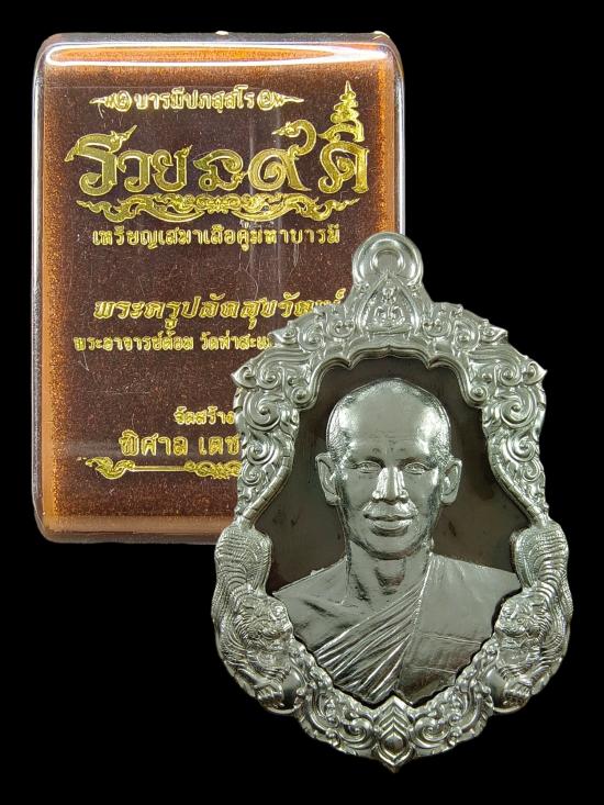 เหรียญเสือคู่มหาบารมี รวยนะ ๙ ดี พระอาจารย์ต้อม วัดท่าสะแบง ร้อยเอ็ด เนื้อนวโลหะ หน้ากากเงินขอบเงิน หมายเลข ๔๕๐ พร้อมกล่องเดิม ถวายงาน โดย ป๋าต้อย เมืองนนท์ |