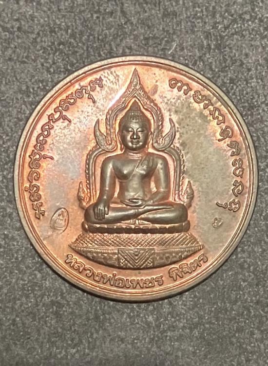 เหรียญบาตรน้ำมนต์ หลวงพ่อเงิน วัดบางคลาน หลังหลวงพ่อเพชร จ.พิจิตร ปี2542-2543 รุ่นพระพิจิตร เนื้อนวะโลหะ |