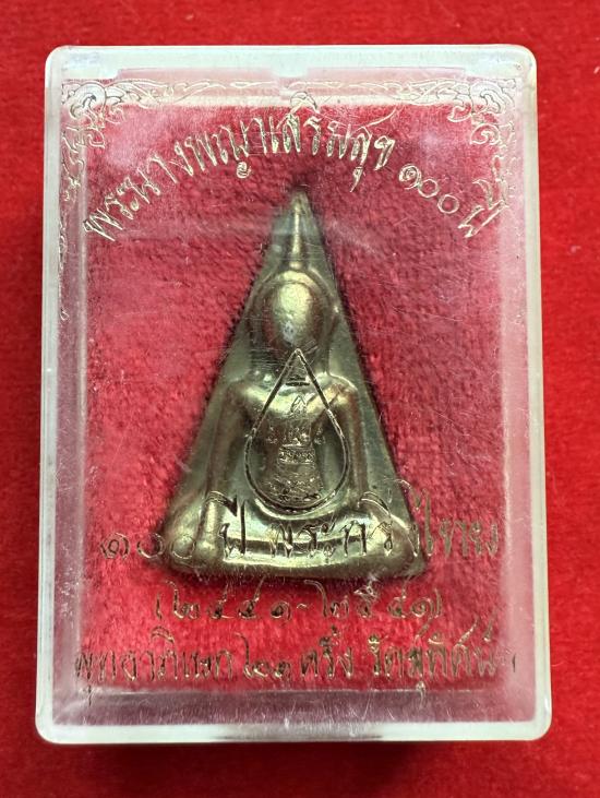 พระนางพญาเสริมสุข 100 ปีพระกริ่งไทย พิธีวัดสุทัศน์เทพวราราม ปี 2541 เนื้อทองฝาบาตร หมายเลข 3028 |