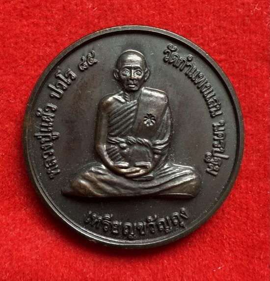 เหรียญขวัญถุงหลวงปู่แผ้ว วัดกำแพงแสน จ.นครปฐม รุ่นอายุ 85 ปี เนื้อทองแดงรมดำตอกโค้ด |