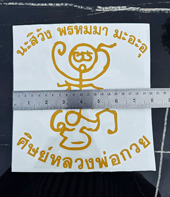 สติ๊กเกอร์ติดรถยนต์ หลวงพ่อกวย วัดโฆสิตาราม ยันต์ตุ๊กตา |