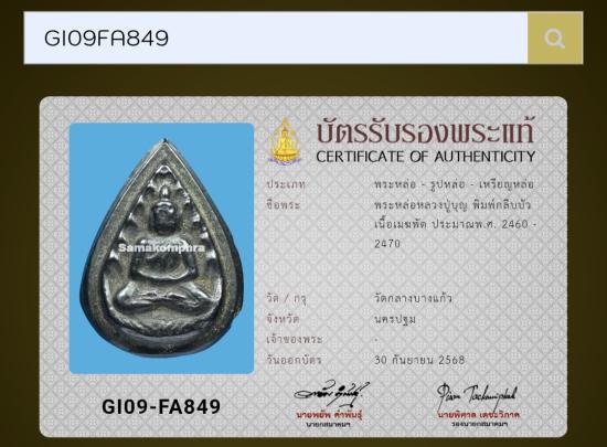 พระหล่อกลีบบัวหลวงปู่บุญ หลังพระปิดตา วัดกลางบางแก้ว เนื้อเมฆพัตร ปี 2460 #พร้อมบัตรสมาคม