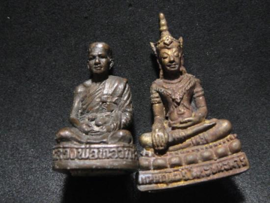 วัดใจเคาะเดียว......100.......รูปหล่อพระพุทธนฤมิตรรัตนชนะมาร รุ่นแรก หลวงพ่อทองกลึง วัดเจดีย์หอย + รูปหล่อพ่อทองกลึง วัดเจดีย์หอย กุ้นอุดผงเต็ม,เกศา รวม 2 องค์ |