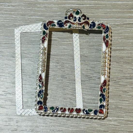 วัดใจ กรอบเงินแท้ งานดี %สูง ตีเกลียว ลงยาสุโขทัย ทรงสมเด็จ ขนาดตามรูป
