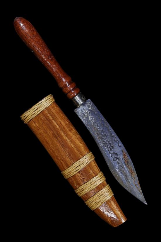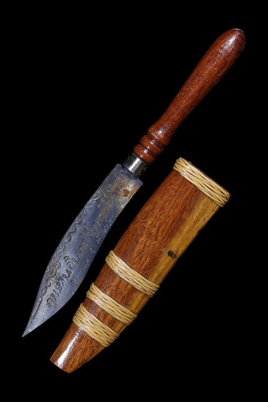 ใบมีดสร้างจากเหล็กนําพี้อาถรรพ์ที่ศักดิ์สิทธิ์เป็นโลหะมีฤทธิ์ในตัวเป็นโลหะอาถรรพ์กันคุณไสยต่างๆ จึงนิยมมาสร้างเป็นอาวุธ หรือเครื่องราง ฝักไม้อาถรรพ์ลงรักสีดํา