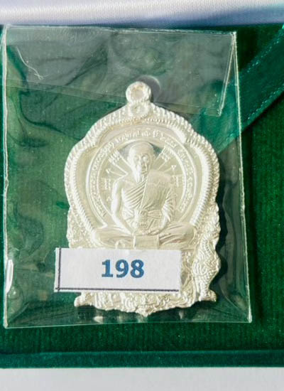 วัดใจ เหรียญเสมา 8 รอบ ศุภมงคล หลวงปู่หุน วัดบางผึ้ง จ.ฉะเชิ่งเทรา เนื้อเงิน เลข198