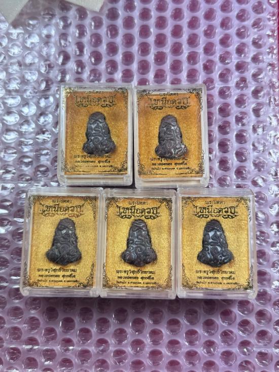 -วัดใจเคาะเดียวแดง-พระปิดตาเหนือดวง เนื้อสัมฤทธิ์ หลวงพ่อทอง วัดบ้านไร่ จ.นครราชสีมา / 5 องค์