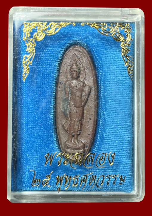 วัดใจ...พระพุทธลีลา 25ศตวรรษ ปี2500 เนื้อผงผสมแร่ สร้างน้อย หายาก กล่องกำมะหยี่เดิมๆครับ. |
