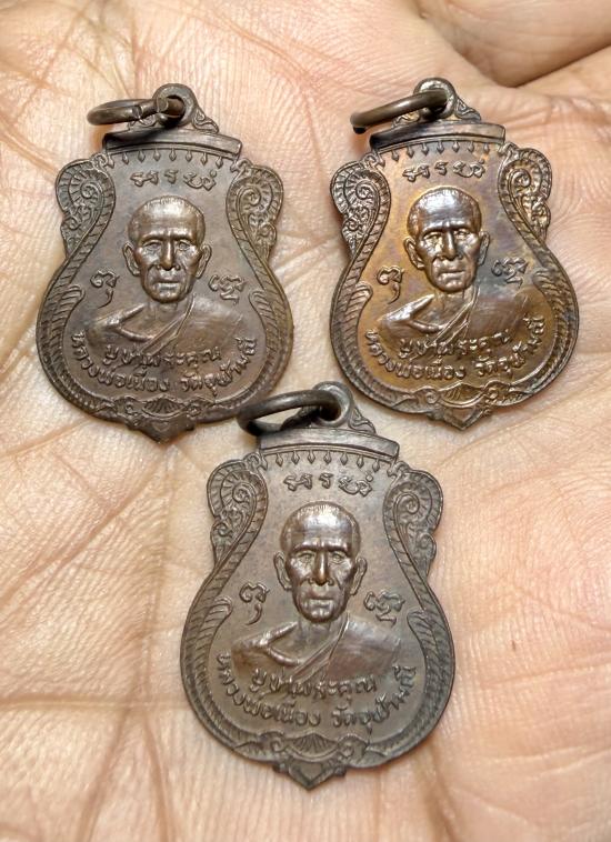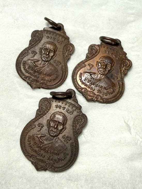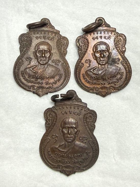 เหรียญเสมาเล็กหลวงพ่อเนื่องวัดจุฬามณีปี 2527 จำนวน 3 เหรียญครับ