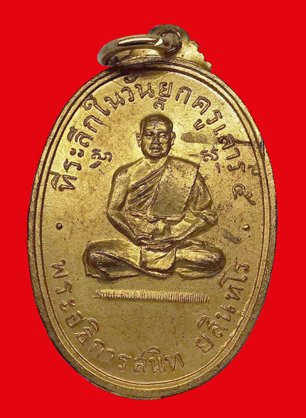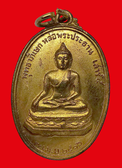 เหรียญพระประธาน หลวงพ่อสนิท วัดลำบัวลอย รุ่นแรก พิมพ์ใหญ่ เนื้อทองแดงกะไหล่ทอง ห่วงเดิม ปี2516 จ.นครนายก |