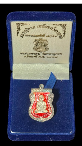 เหรียญฉลองเลื่อนสมณศักดิ์ 47/57 พ่อท่านพรหม วัดพลานุภาพ จ.ปัตตานี ปี2557 เนื้อเงินลงยาแดง หมายเลข๑๐๖ สภาพสวย มาพร้อมกล่องเดิม