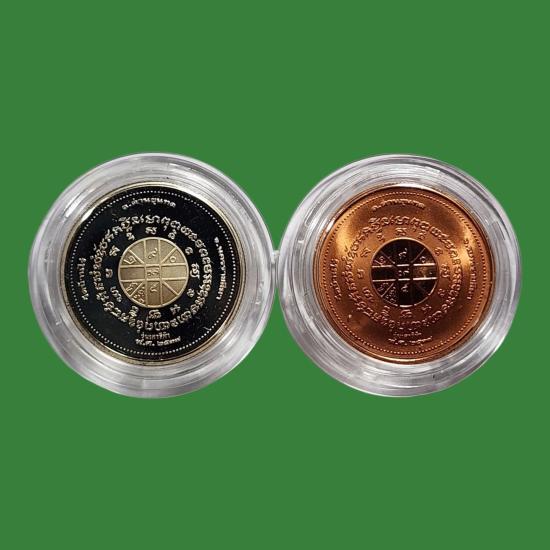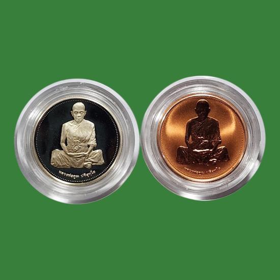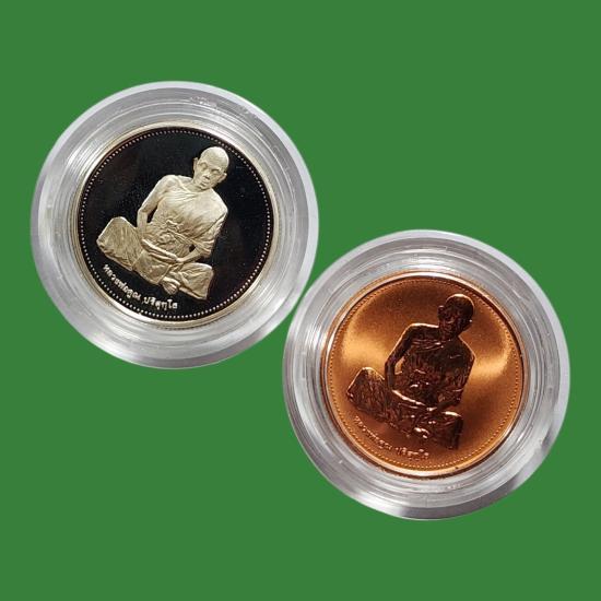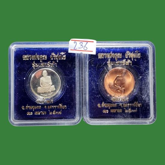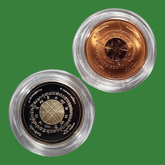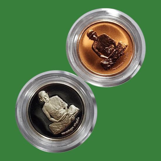 หลวงพ่อคูณ วัดบ้านไร่ รุ่นเสาร์ห้า พ.ศ.2537 เนื้อเงินขัดเงา + ทองแดงขัดเงา สภาพสวยตามรูป 2 องค์