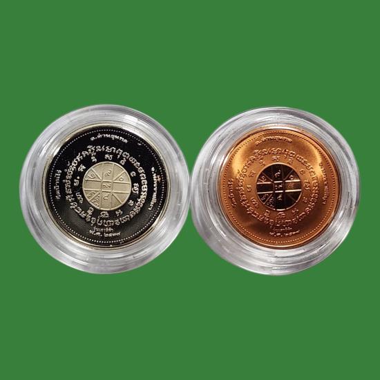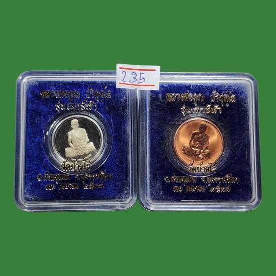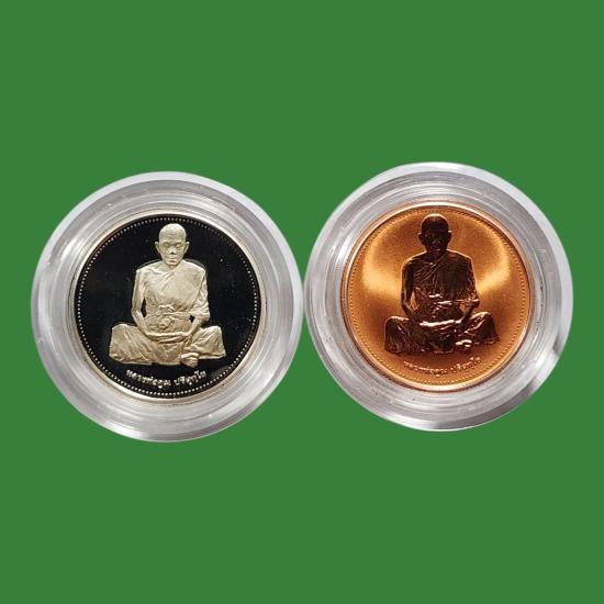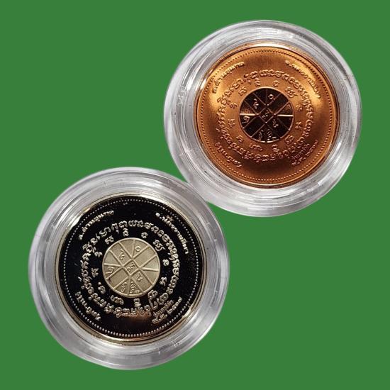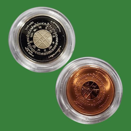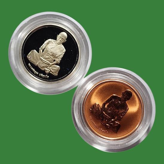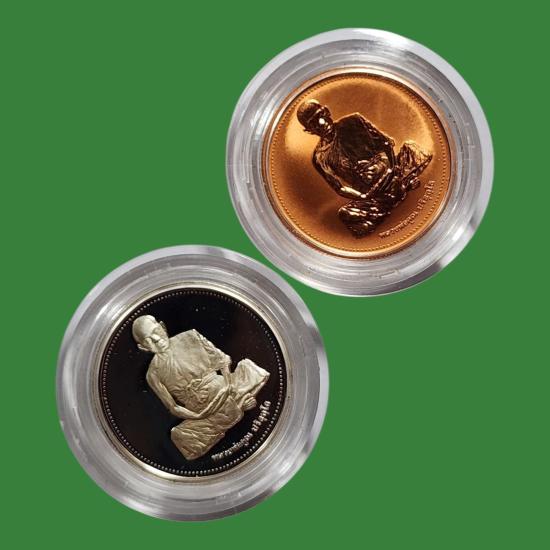 หลวงพ่อคูณ วัดบ้านไร่ รุ่นเสาร์ห้า พ.ศ.2537 เนื้อเงินขัดเงา + ทองแดงขัดเงา สภาพสวยตามรูป 2 องค์