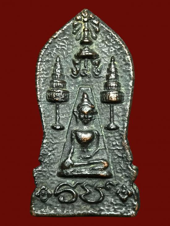 รูปหล่อหลวงพ่อโต วัดป่าเลไลยก์ สุพรรณบุรี ปี 2515 หลังพระผงสุพรรณ เนื้อนวะโลหะ ผิวหิ้ง |
