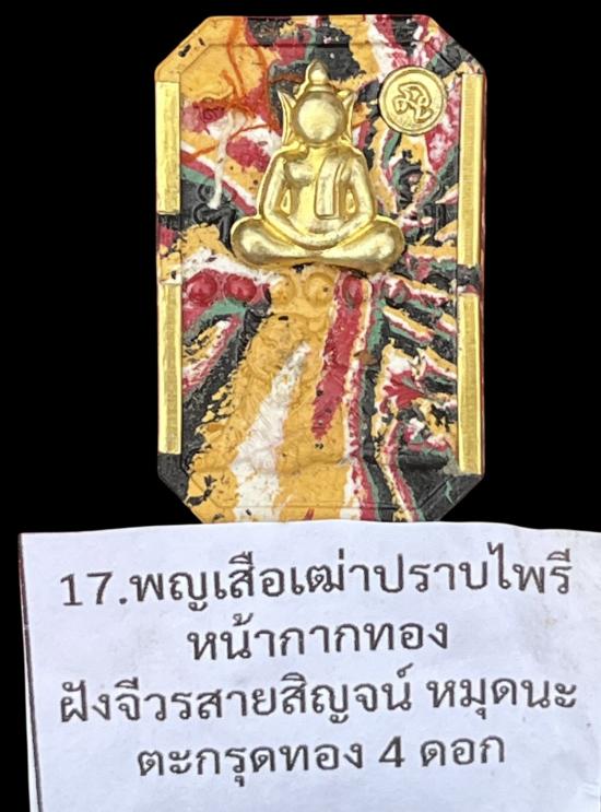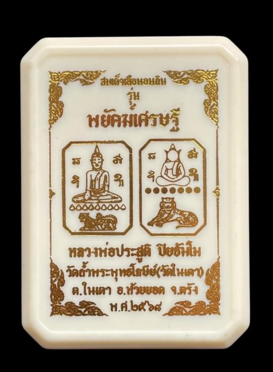สมเด็จเสือนอนกิน รุ่น "พยัคฆ์เศรษฐี" หลวงพ่อประสูติ ปิยธัมโม วัดถ้ำพระพุทธโกษีย์(ในเตา)จ.ตรัง เนื้อพญาเสือเฒ่าปราบไพรี หน้ากากทอง ฝังจีวรสายสิญจน์ หมุดนะ ตะกรุดทอง 4 ดอก No.69 พร้อมกล่องเดิมครับ |