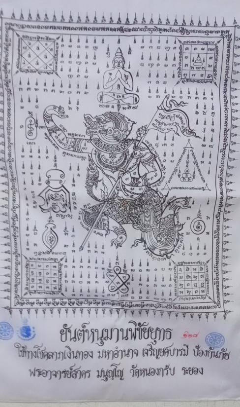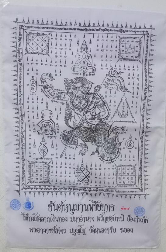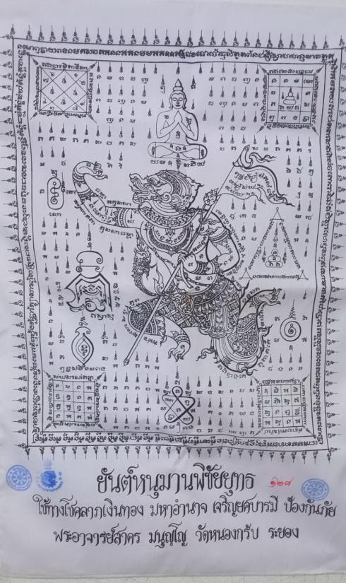 ผ้ายันต์หนุมานพิชัยยุทธ หลวงพ่อสาคร วัดหนองกรับ รุ่นมหาปราบคุมพล ผืนใหญ่สุดอลังการ ขนาด 21 x 30 นิ้ว ปั๊มยันต์หมึก ตราวัด รันหมายเลข เช่ามาโดยตางจากวัดเลยครับ