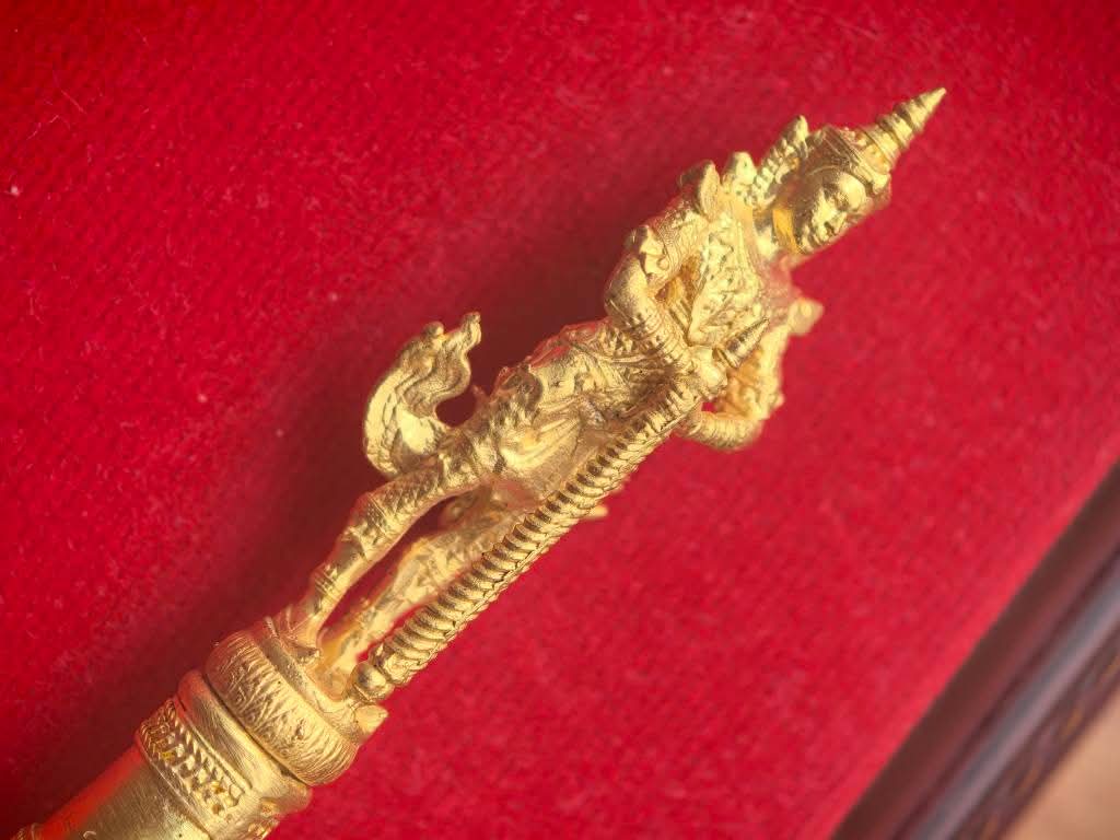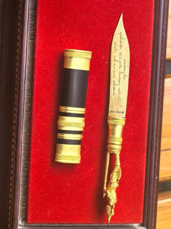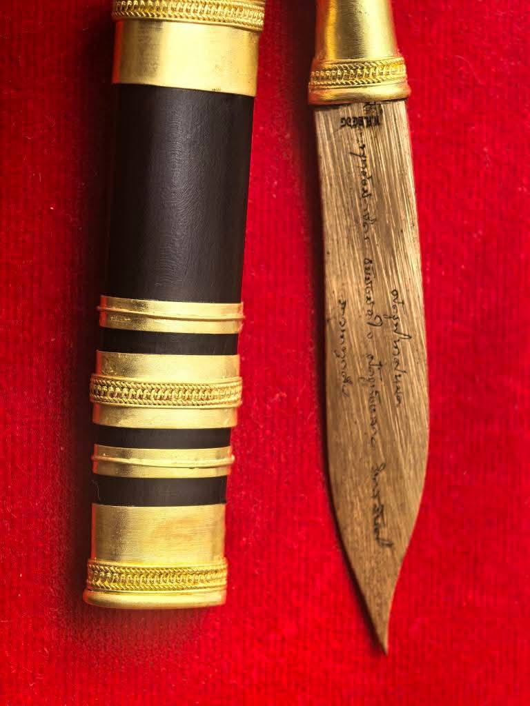 มีดหมอท้าวเวสสุวรรณทำลายโรค/ศัตรูพินาศหมด เลเซอร์ลายมือพระคุณหลวงพ่อฤๅษีลิงดำวัดท่าซุง ที่ใบมีดทั้ง 2 ด้าน |